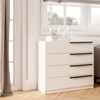 Комод «Айрон» — вместительный комод с четырьмя вместительными ящиками — универсальное решение, которое подойдёт и для спальни, и для домашнего кабинета, и для гостиной. Эргономичные черные ручки контрастного оттенка делают эту модель более изящной. Комод идеально подходит для хранения белья, одежды, аксессуаров, важных документов, украшений и мелочей. Верхнюю крышку можно использовать как дополнительную полочку для лампы.